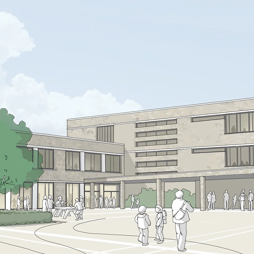 Erweiterung und energetische Sanierung des Annette-von-Droste-Hülshoff‑Gymnasiums MünsterRealisierung Neubau: 2026-2028Realisierung Energetische Sanierung: 2029-2030
